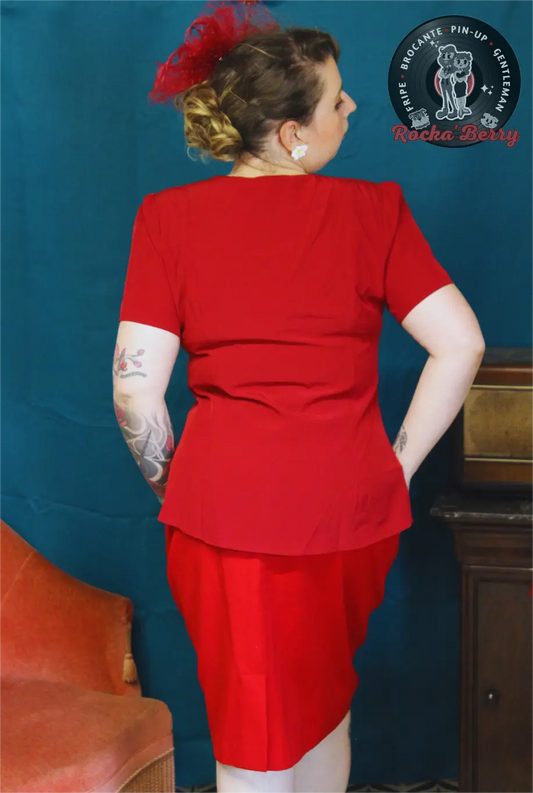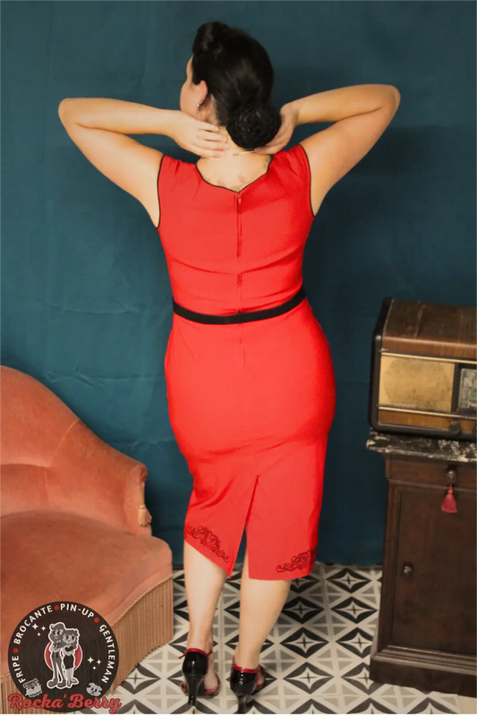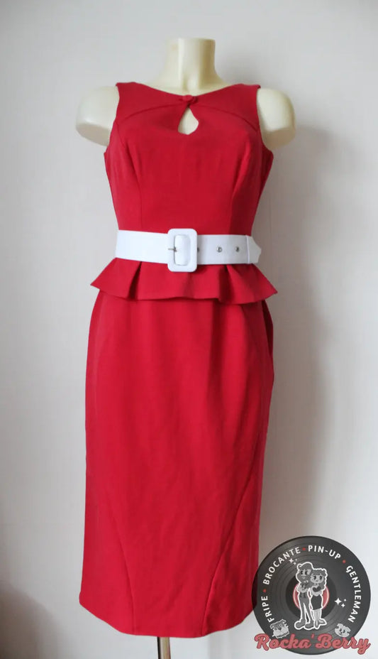 Robe Crayon Peplum Rouge Pinup - MissCandyFloss