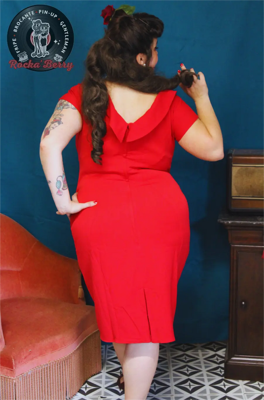 Pinup Red “Marilyn” Pencil Dress - MissCandyFloss