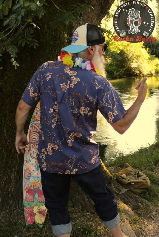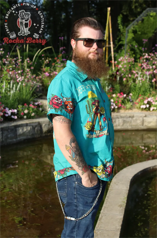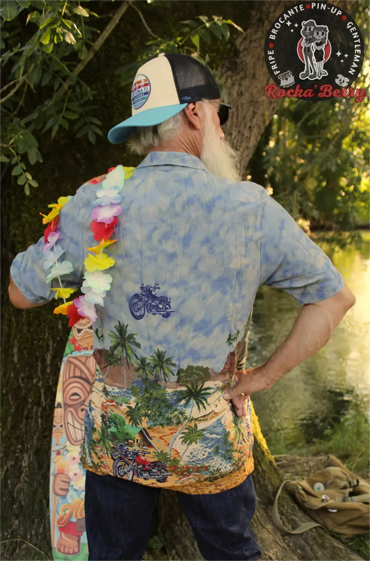 Dickies Multicolored Motorcycle Hawaiian Shirt on Blue Background