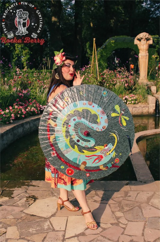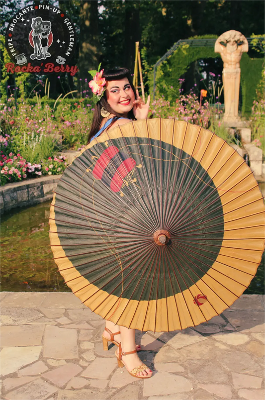 Ombrelle Vintage Asiatique Lampion Jaune & Verte