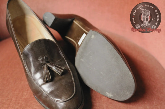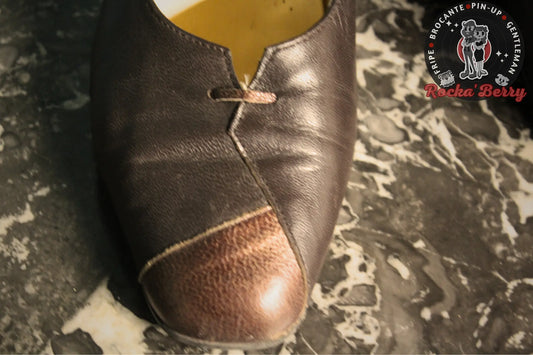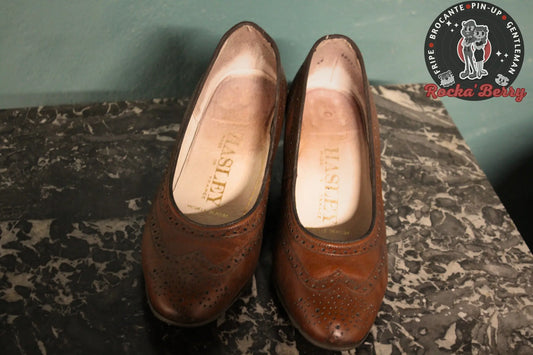 Escarpins Pin-up Vintage Marron Cuir Style Derbies - Made in France
