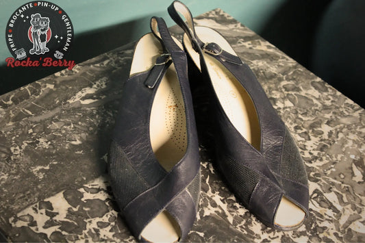 Sandales Pin-up Vintage Bleu Marine - Made in France
