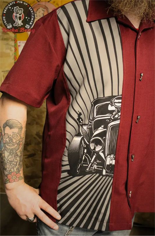 Chemise de Bowling Bordeaux Hot Rod Burst - Steady Clothing ( Made in Usa )