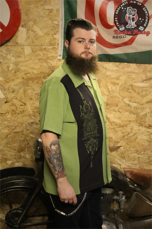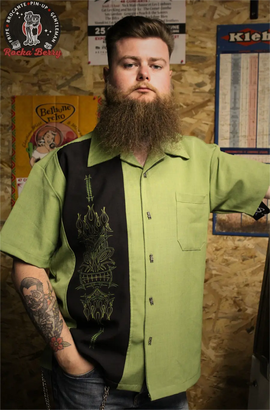 Chemise de Bowling Verte Pinstriping Tiki - Steady Clothing ( Made in Usa )
