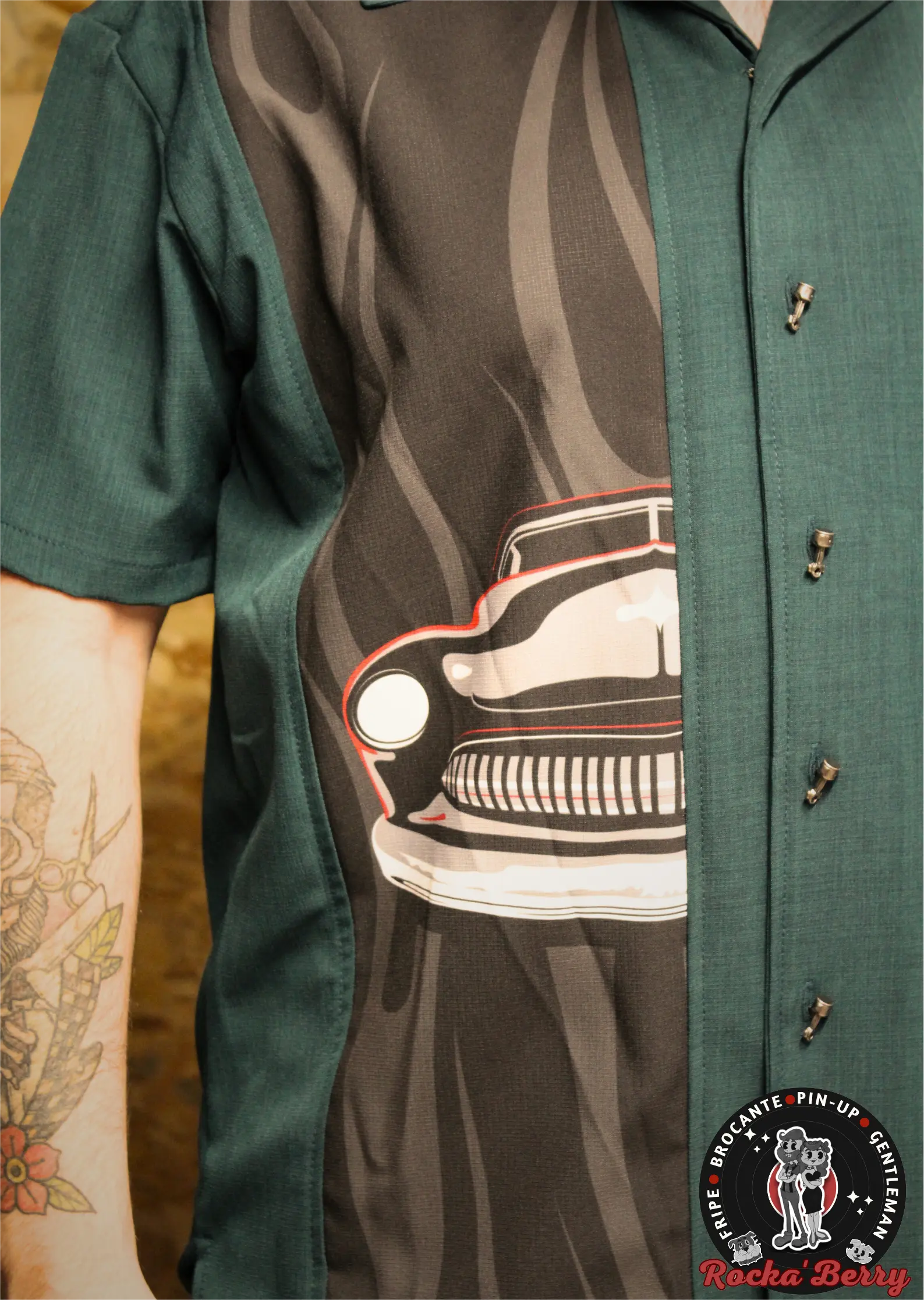 Cette chemise de bowling bleu canard "Merc Flame" de Steady Clothing incarne l’esprit du rock’n’roll et des runs nocturnes. Conçue pour les passionnés de plomb lourd et de style affirmé, elle dégage une ambiance authentique, entre huile moteur et liberté. Fabriquée aux États-Unis, elle allie qualité et caractère pour un look tranché et unique.